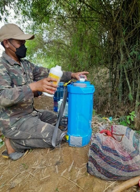 [2] The conduct of this study, including the inventory of pesticide products, was made possible through collaboration with the Provincial Department and District Offices of the Ministry of Agriculture and Forests, as well as the active participation of contract farming (CF) companies. Interviews conducted with seven companies led to the identification of approximately 43 pesticide products, the majority of which are not readily accessible for purchase in Oudomxay. Interestingly, the investigation revealed that at least two of these companies operated in a manner where farmers had limited awareness of the specific pesticides applied on their plots, as product selection, dosing, and pre-dilution were directly managed by CF companies (see Fig. 4).