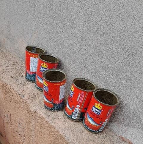 Figure 4– Pesticides and the contract farming landscape. The above right panel shows farmers from a village in La district contracted by the Lao Tobacco Company watering their tobacco plants. The above left panel show the presence of pesticide sachets distributed by the company to farmers. Each farmer receives a certain number of pesticide sachets or bottles, based on the area cultivated, and must comply with the technical recommendations defined by the company. The below left panel shows fields of long beans under contract farming arrangements with two Chinese companies. The companies carry out the dosage of pesticides themselves and distribute pre-diluted solutions to the contract farmers. The latter are generally unaware of the products used, and usually collect the pre-diluted solutions in recycled sardine tins from the companies, as shown in the below right panel. (Source: CCL; La District, December 2023).