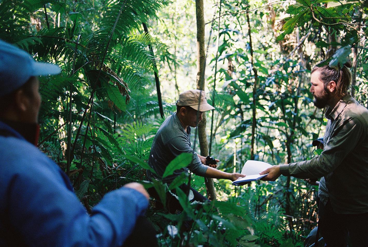 CCL and BioPhonia team setting up bioacoustic devices in pilot forest spots of Oudomxay, November 2023.