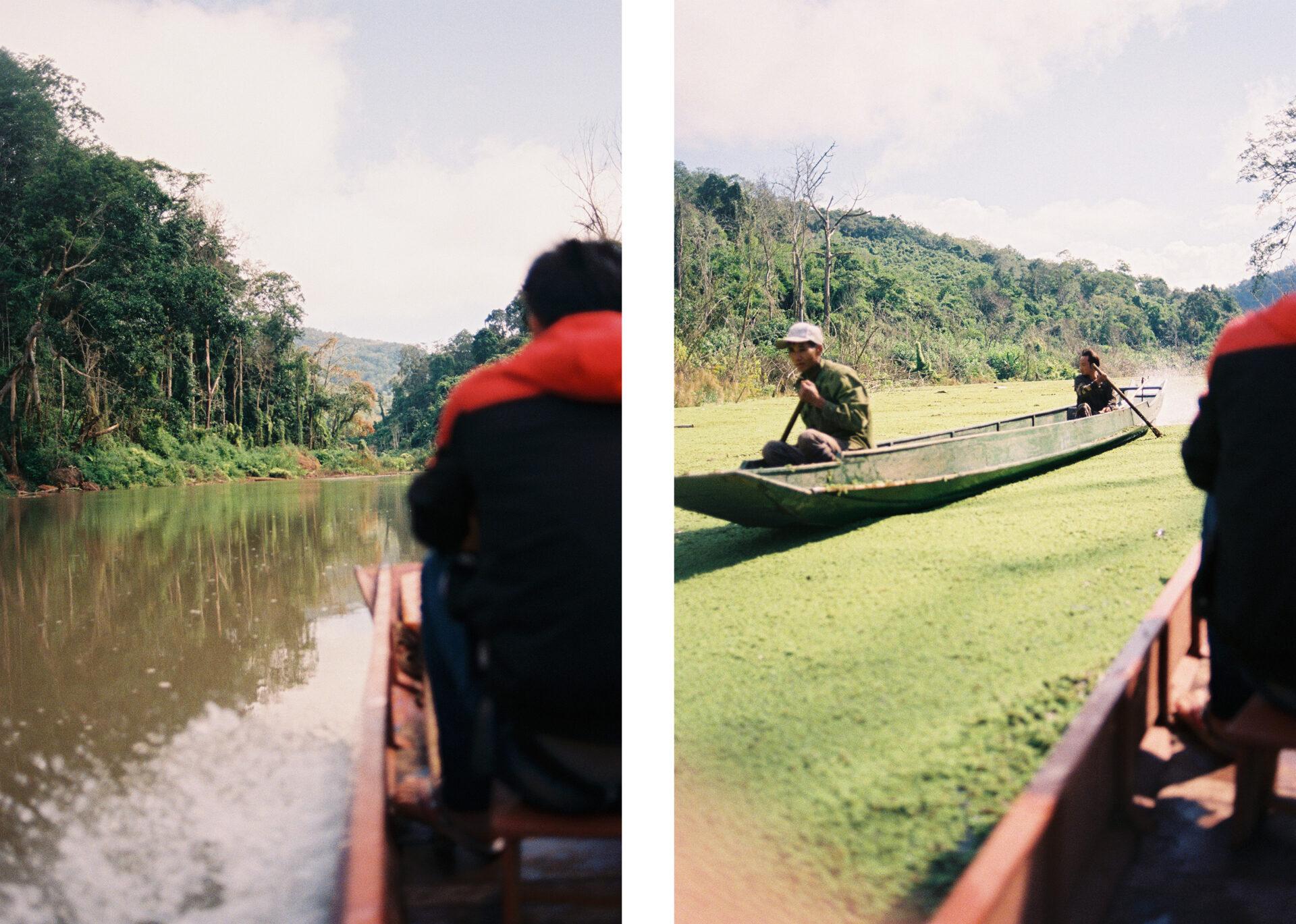 View of the Nam Ou river upstream Ban Tang in Nyot Ou district, Phongsaly Province. The impoundment of the Nam Ou 7 dam two years ago drastically increased the level of the river, reduced the water flow causing the proliferation of invasive plants and an eutrophication process. In the north of Phongsaly, the Nam Ou river crosses the Phou Dene Dine National Protected Area. The rise of its water level facilitates human incursions into forest areas previously difficult to access.