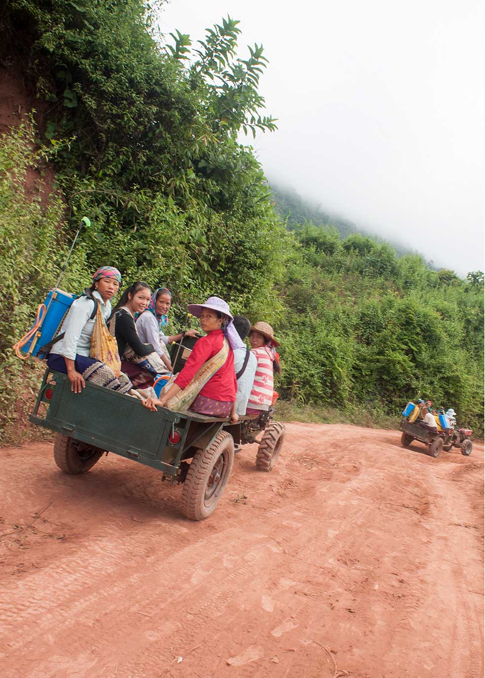 After growing cardamom, maize is the second income source for Ban Kang’ farmers. Planted on the bottom of hills, hybrid corn is used for feeding animals and exported to China for the same purpose. After sowing and thinning, farmers apply fertilizers, and then, herbicides for weeding. Today, the use of pesticides is common. The combination of Vietnamese hybrid seeds and agrochemicals came the norm for upland as well as lowland farmers, applying both pesticide and herbicide in off-season vegetables growing, sugarcane or jobs’ tear contract farming production. Sprayers are manual hand-compression sprayers with tanks carried on the back. No special body protection is used during spraying. However, thanks to information provided through trainings and discussions, more farmers in Ban Kang and villages around take precautions and use gloves as much as possible and keep children away from their use. However, women & children walking along the roads of the district’s valleys with sprayers on their backs are still a common sight.