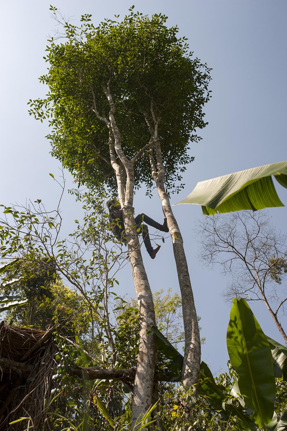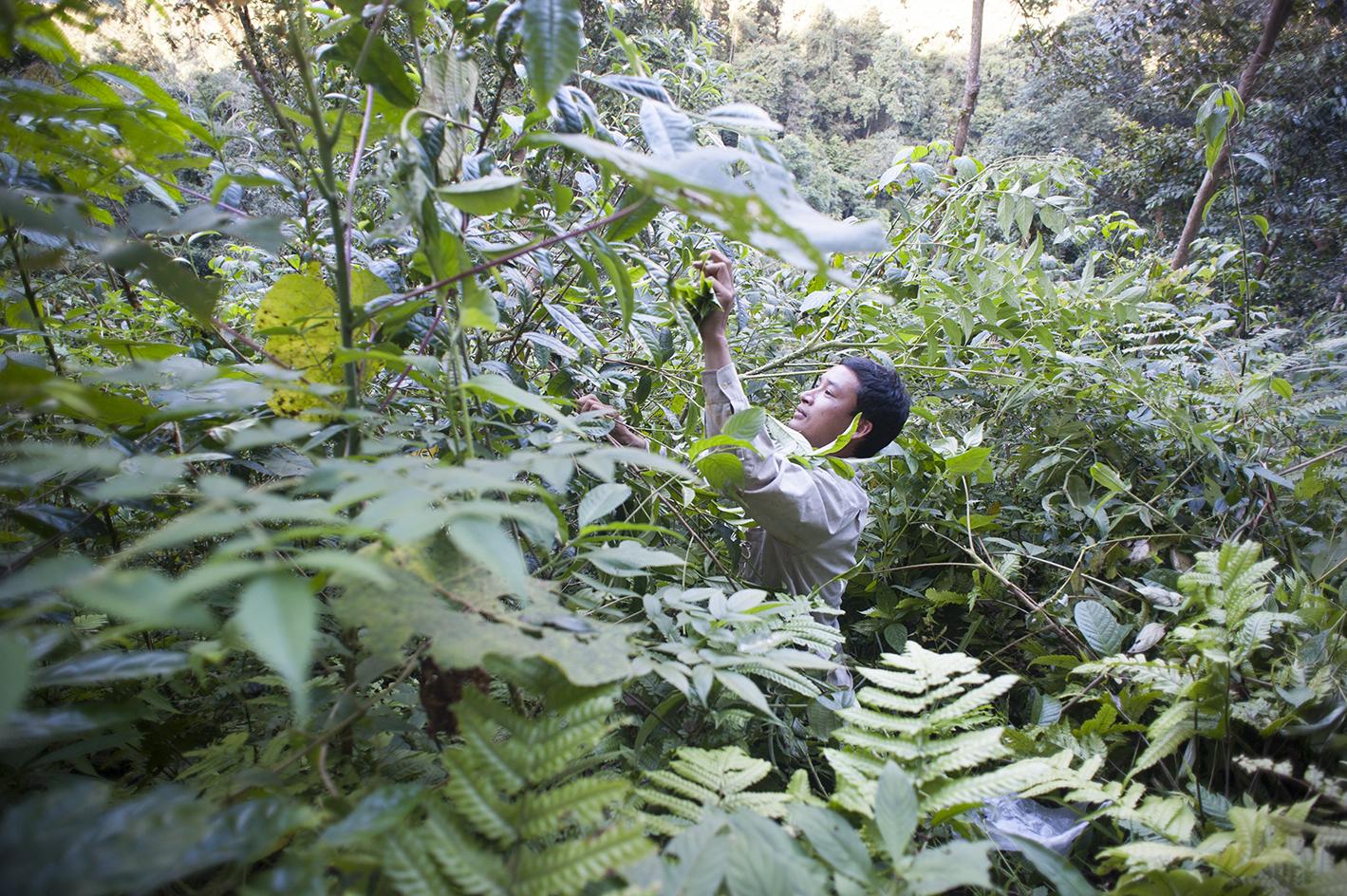 In Nyot Ou, the northernmost district of Laos, tea trees grow in the wilds of the tropical forest covering the slopes of the mountains bordering the Chinese province of Yunnan. The wild tea stems from the variety Assamica, one of the two main varieties of tea. In China, this variety is called “the high tree with larges leaves”.